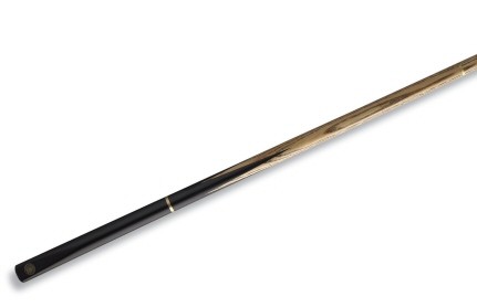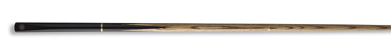 Dieses dreiteilige 57-Zoll-Queue hat einen Schaft aus Esche und einen maschinell gespleißten Ebenholzimitat-Griff mit Messing-Gewinden in der Mitte des Queues und 10 Zoll vom Ende entfernt.