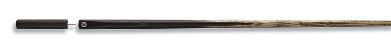 Dieses halbgeteilte 57-Zoll-Queue hat einen Schaft aus Esche mit Griff aus echtem Rosenholz, der per Hand gespleißt wurde und mit einem grünen Furnier verziert ist.