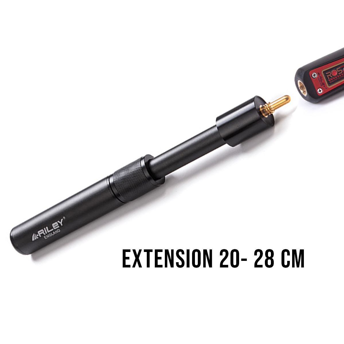 Das spezielle Riley Snookerleder ist laminiert mit 9,5 mm Durchmesser. Für die Verlängerungsoption gibt es eine passenden Teleskop Extension mit Schnellverschluss, verstellbar von 20-28 cm.