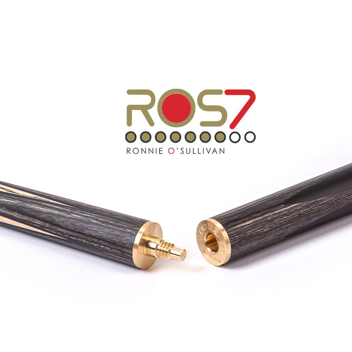 Am Butcap-Ende ist ein metallplättchen eingearbeitet das mit ROS 7 ehrenvoll auf die Snookerlegende und 7-time World Champion hinweist.