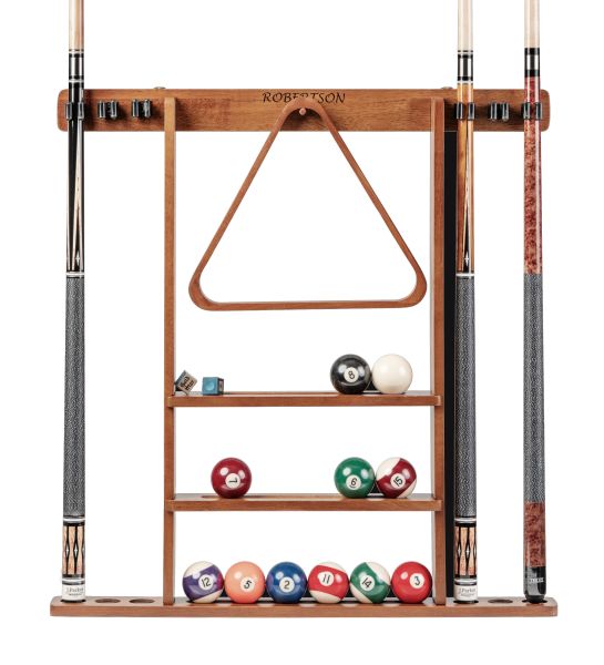 Zusätzlich kann man die Billardkugeln oder Kreide sehr nützlich und optisch passend ablegen. Auch für das Triangel ist ein Ablagehaken integriert.