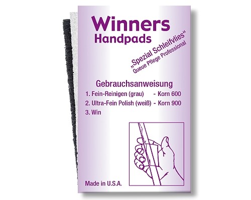Handpads bestehen aus einem Spezialvlies mit 2 verschiedenen Körnungen, Korn 600 (grau) benutzt man zum Reinigen, das Feinkorn 900 (weiß) zum Ultra-Fein-Polieren.