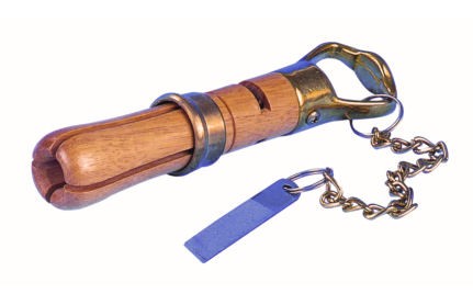 Lederfixierer aus Holz und Messing zum Einspannen des Leders nach dem Kleben.